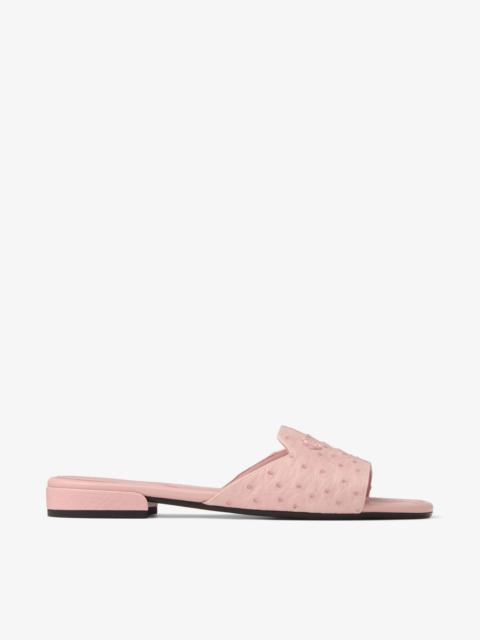 Details, Care & Fit A sleek silhouette, the Dina flat is a modern low-heel style crafted from ostrich leather. It is designed with a square toe and complemented by a our signature Jimmy Choo monogram. - Ostrich leather - Jimmy Choo monogram - Square toe - Leather lining - Leather and rubber sole - Heel height measures: 15mm/0.5 inches