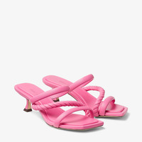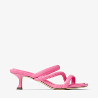 Details, Care & Fit Item No. DIOSA50ZSA Playful yet practical, the DIOSA sandal is Italian-crafted in candy pink luxe nappa leather. Our pair features two padded straps and a twisted strap, as well as a padded insole for daylong comfort. Slip on and wear all summer. Fits small to size. We recommend taking one size larger. - Luxe nappa leather - Square toe - Slip-on style - Padded insole - Angular heel - Leather sole - Heel height measures: 50mm/2 inches - Made in Italy