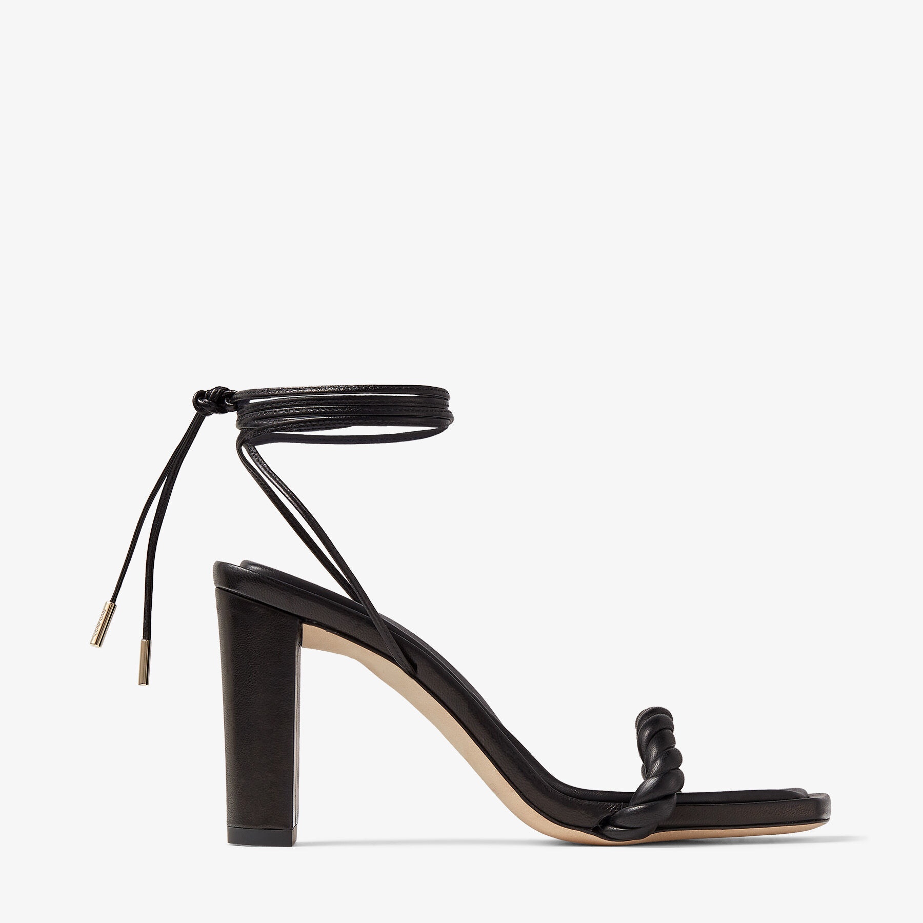 Details, Care & Fit Item No. DIOSASANDAL85ZSA Elegantly minimal, the DIOSA sandal is Italian-crafted in black luxe nappa leather. Our style features a twisted leather toe strap and a wraparound ankle strap, and it is completed by a modern square toe and slim 85mm block heels. Italian sizing. Fits true to size. - Luxe nappa leather - Square toe - Twisted toe strap - Tie-fastening ankle strap - Heel height measures: 85mm/3.3 inches - Made in Italy