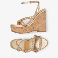 Gold Metallic Nappa Wedge Sandals