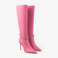 Details, Care & Fit Item No. DREECEKB95NAP Add glamour to every step with the DREECE knee boots. Italian-crafted in candy pink nappa leather, our high-energy pair is presented with a gold-tone metal and leather cuff bracelet and a striking pointed-toe silhouette. Italian sizing. Fits true to size. - Nappa leather - Cuff bracelet - Pointed toe - Pull-on style - Slim heel - Leather lined - Leather sole - Heel height measures: 95mm/3.7 inches - Made in Italy