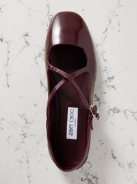 Jimmy Choo's collapsible-heel 'Eleri' flats are an elegant cross between ballet shoes and Mary Janes. They've been made in Italy from glossy patent-leather and embellished with logo-detailed faux pearl charms at the crossover straps. Wear yours with mini dresses or jeans. Size & Fit - Fits true to size, take your normal size - Only available in full sizes, go up to the nearest whole size if you take a half size - Italian sizing Details & Care - Slight heel - Merlot patent and matte leather (Calf) - Buckle-fastening strap