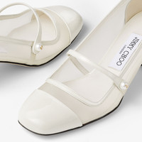Details, Care & Fit Item No. ELISA45TNX The Elisa pump is a classic silhouette, elevated by a mesh upper with a patent leather toe and heel. They're embellished with a pearl-adorned strap and feature a block 45mm heel. Wear in your day or off-duty wardrobe for versatile looks. - Mesh - Patent leather - Square toe - Pearl-embellished strap - Gold-tone Jimmy Choo emblem - Heel height: 45mm/1.7 inches - Made in Italy