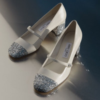 Details, Care & Fit The Elisa pump is a classic silhouette, elevated by a Nappa leather upper with a glitter embellished toe and heel. Complemented by a pearl-adorned strap, this elegant silhouette features an ultra-wearable low block heel. - Nappa leather - Glitter finish - Square toe - Pearl embellishment - Jimmy Choo emblem - Block heel - Leather sole and lining - Heel height: 45mm/1.7 inches - Made in Italy