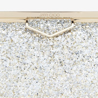 Details, Care & Fit Ellipse in champagne coarse glitter fabric is simple yet elegant. Designed in Italy, it is developed with two resin shells and is lined with luxurious nappa leather. Finished with a detachable chain strap, wear yours on the shoulder or carried in hand for the ultimate evening look. - Coarse glitter fabric - 1 main compartment - Internal Jimmy Choo embossed leather plaque - Lined in nappa leather - Detachable chain strap - Bag measures: H12.5 x L22 x W3cm - Max strap drop measures: 33cm - Made in Italy
