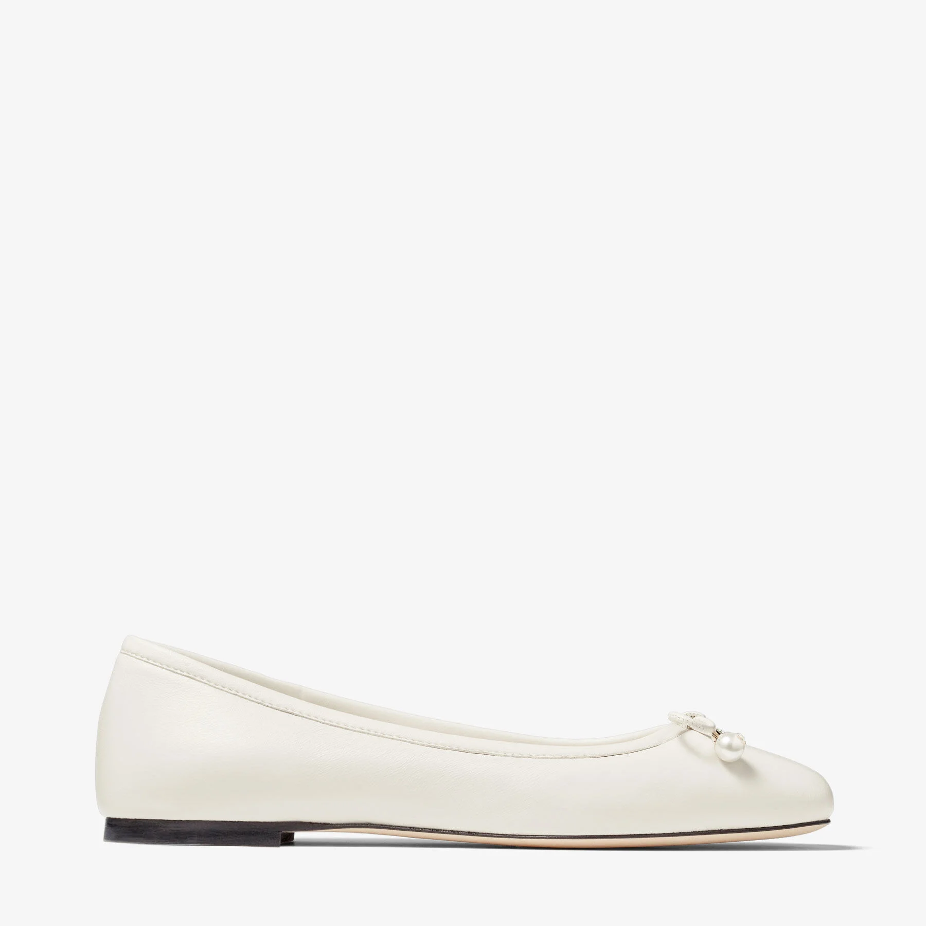 Details, Care & Fit Look to Elme in Nappa leather for classic style. Our timeless ballerina flats are ideal for an understated yet glamorous wardrobe; complemented by a bow and signature pearls adorned with our JC emblem. - Nappa leather - Pearl and crystal-embellished bow - Jimmy Choo emblem - Leather lining and sole - Made in Italy