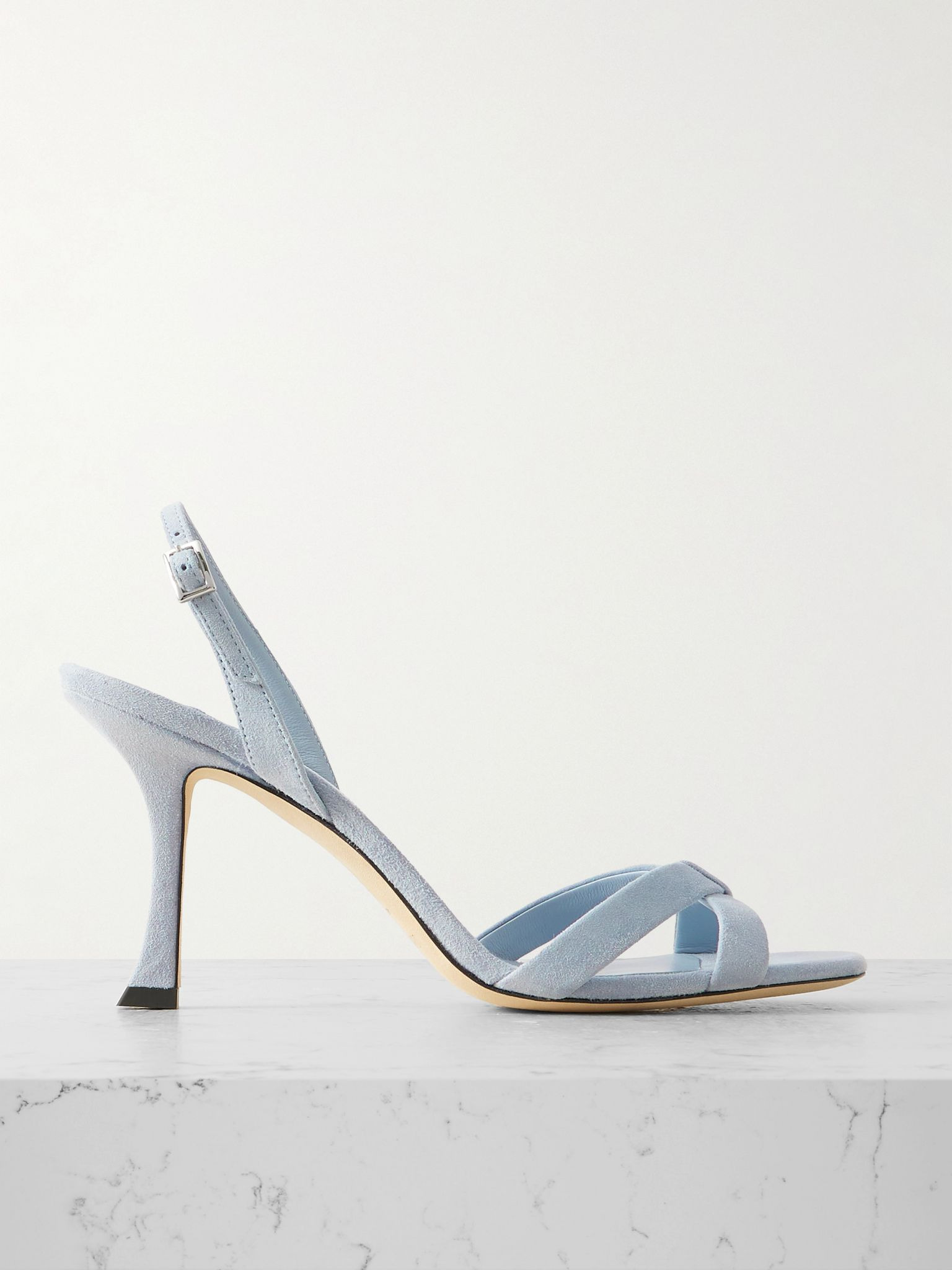 Jimmy Choo's clientele includes A-listers like Margot Robbie to Meryl Streep. Classic and minimal, these 'Elsy' sandals are made from soft sky-blue suede and have buckled slingback straps. Size & Fit - Fits true to size, take your normal size - Italian sizing Details & Care - Heel measures approximately 90mm/ 3.5 inches - Sky-blue suede (Goat) - Slip on