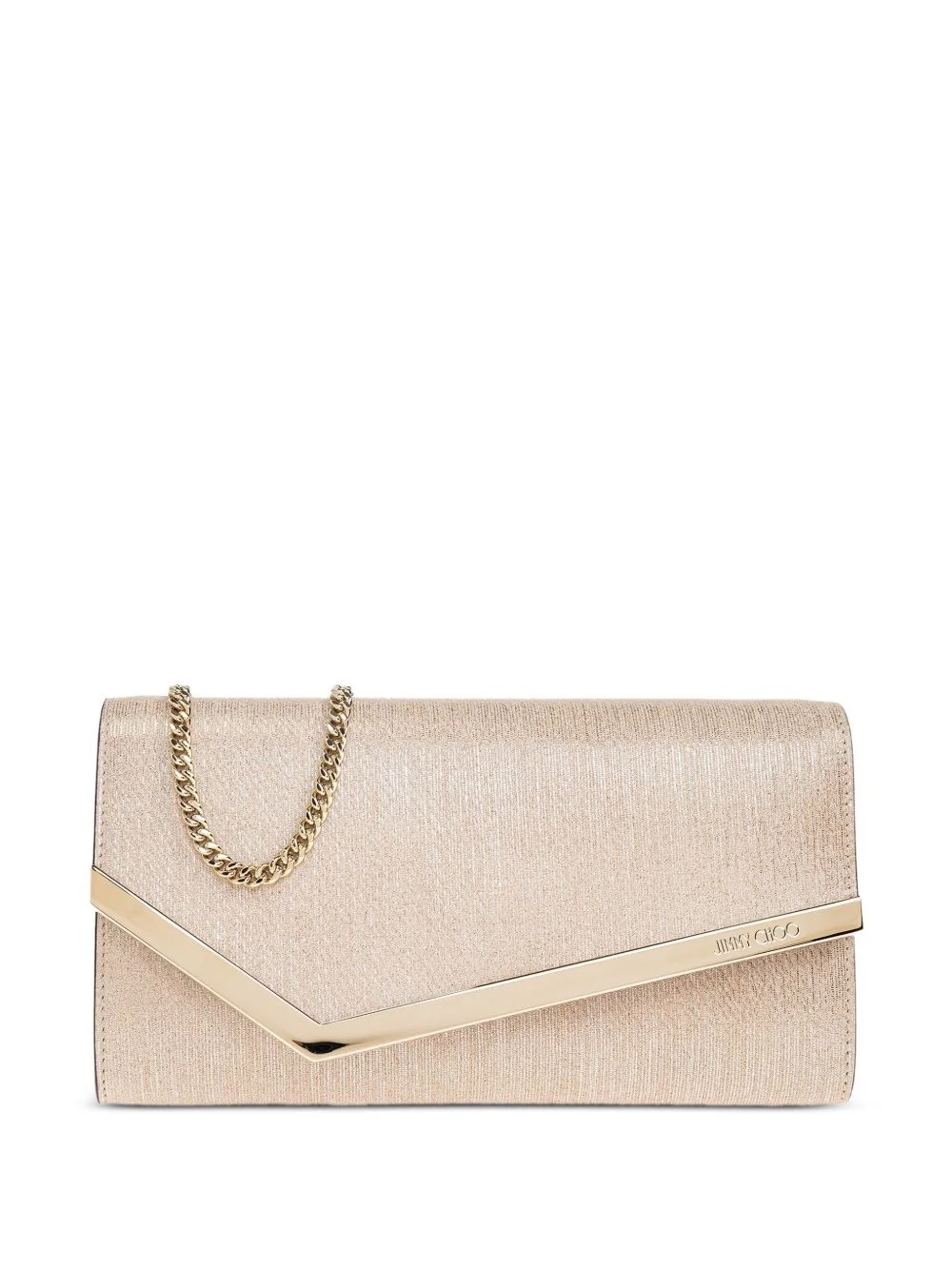 metallic-leather clutch bag Highlights - Beige - Angled gold-tone detail - Detachable chain strap - Flap closure Made in Italy Composition Outer: Calf Leather 100% SIZE & FIT Measurement DEPTH 1.18 in(3 cm) HEIGHT 4.52 in(11.5 cm) WIDTH 8.66 in(22 cm)