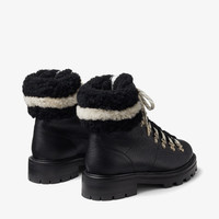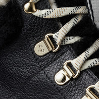 Black Grainy Leather Hiking Boots with Natural and Black Shearling Collar