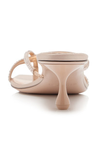 Loved by everyone from mega-celebrities to first ladies and royalty, Jimmy Choo's faultless roster of shoes and accessories have graced countless red carpets and glamorous events. The 'Etana' sandal has a slim and strappy toe-hold silhouette crafted from crystal-encrusted blush-satin set atop a sculptural teardrop heel. PRODUCT DETAILS - Heel height measures approximately 50mm/ 2" - Slip on - Composition: satin - Designer color: Macaron - Made in Italy