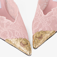 Rose Jimmy Choo Lace Pumps with Metal Lace Detail