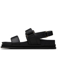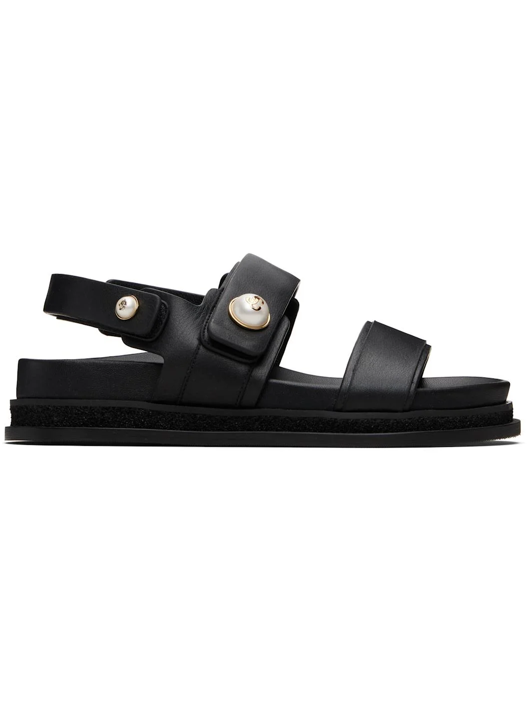 Buffed calfskin flat sandals. · Open toe · Velcro ankle and slingback straps · Logo embossed at molded leather footbed · Foam rubber midsole · Treaded rubber sole · Faux-pearl and silver-tone logo hardware Supplier color: Black Upper: calskin. Sole: rubber. Made in Spain 252528F124004