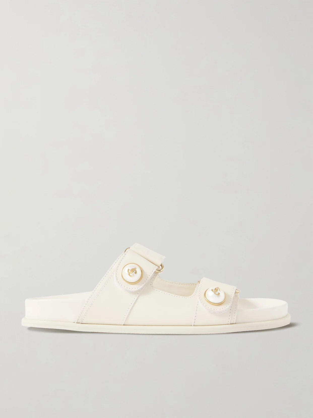 Jimmy Choo's 'Fayence' slides are the type that you can slip on with any summer outfit. They're made from buttery leather with adjustable straps and contoured footbeds. Look closely to notice the signature gold logo on the faux pearl embellishments.