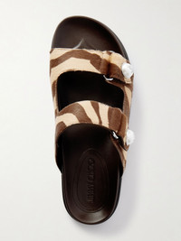 Faux pearl-embellished zebra-print calf hair sandals Chocolate