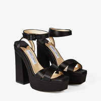 Details, Care & Fit Item No. GAIA140SAT Elevate the everyday with our Gaia platform sandals. Crafted in silky satin, this statement style is set on a 140mm block heel, and feature straps that cross over the toes with an ankle strap fastening. - Satin - Square open toe - Ankle strap with buckle fastening - Heel height measures: 140mm/5.5 inches - This product uses responsible satin – a mix of 28% organic silk and 72% certified viscose