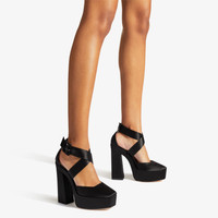 Black Satin Platform Heels