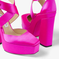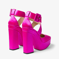 Fuchsia Satin Platform Heels