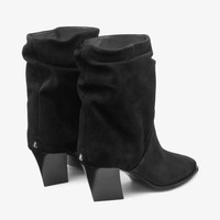 Details, Care & Fit The Hart statement ankle boot is characterised by a slouched silhouette. Crafted in velvet suede, it is finished with a sculptural, oblique block heel defined by a faceted, triangular cut. - Velvet suede - Ankle boot - Block heel - Heel height measures: 60mm / 2.3 inches - Made in Italy