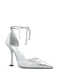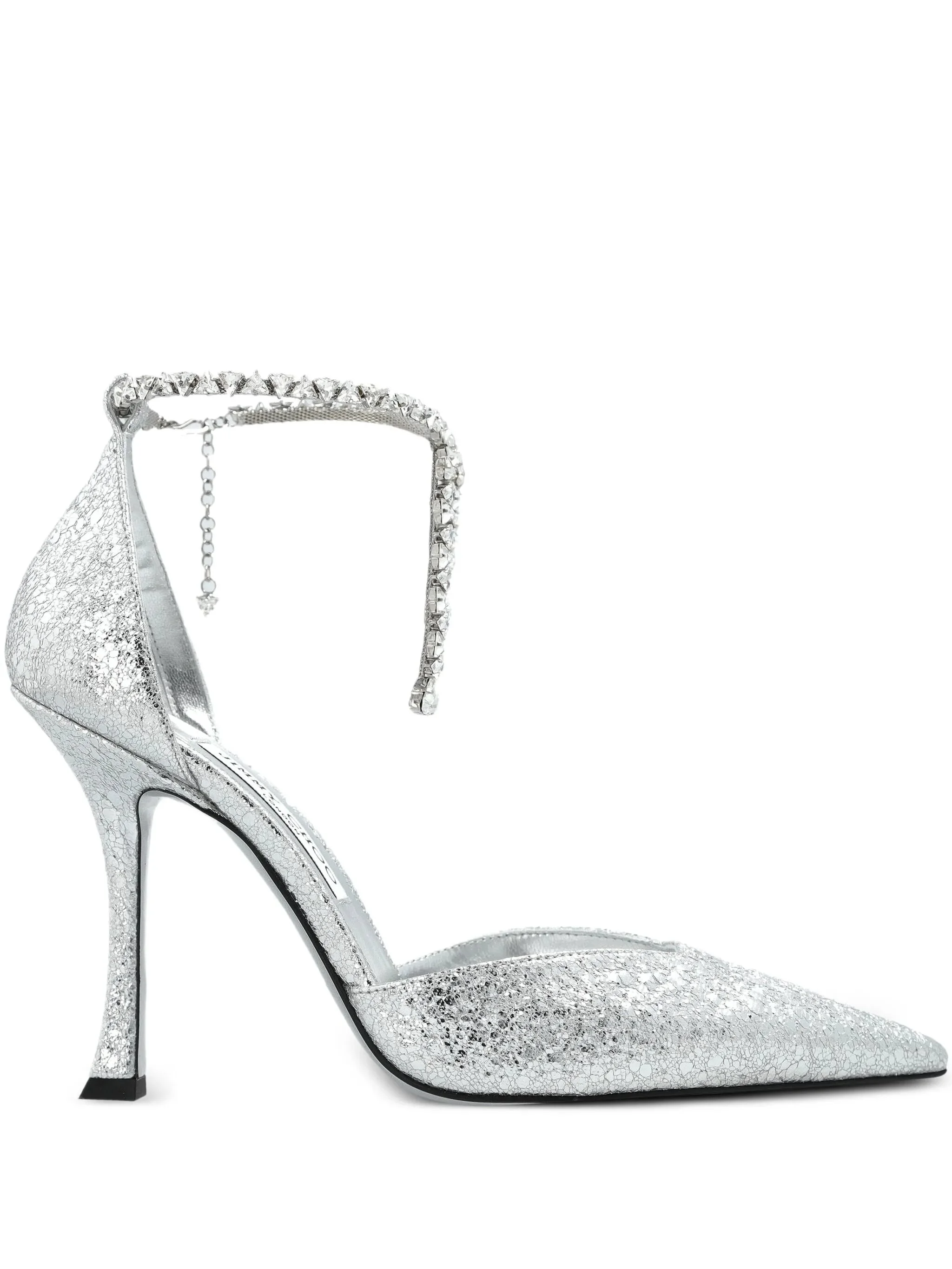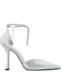 silver glitter finish pointed toe crystal-embellished ankle strap 110mm stiletto heel - heel: 11.0 centimetres - Color: SILVER - Made in: Italy - Designer Style ID: STEVIE 100 HTJ SILVE Composition and care Lining Composition Leather: 100.0%, Sole Composition Leather: 100.0%, Sole Composition Rubber: 100.0%, Outer Composition Fabric: 100.0%, Lining Composition Fabric: 100.0%
