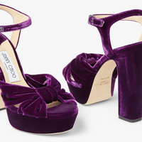 Details, Care & Fit Item No. HELOISE120VEL Elevate the everyday with our Heloise platform sandals. In soft velvet, they have a retro-inspired silhouette that's set on a 120mm block heel, and feature feminine knotted straps that cross over the toes. Italian sizing. Fits true to size. - Velvet - Round open toe - Ankle strap fastening - Knotted straps - Heel height measures: 120mm/4.7 inches - Platform measures: 30mm/1.2 inches - Made in Italy