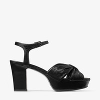 Details, Care & Fit Bring statement style to your wardrobe with the Heloise platform sandal in vintage metallic leather. This retro-inspired silhouette is set on a block heel, and features flattering crossed knotted straps. - Vintage metallic leather - Round toe - Ankle strap fastening - Knotted straps - Platform sole - Heel height measures: 80mm/3.1 inches - Platform measures: 25mm/0.9 inches - Made in Italy