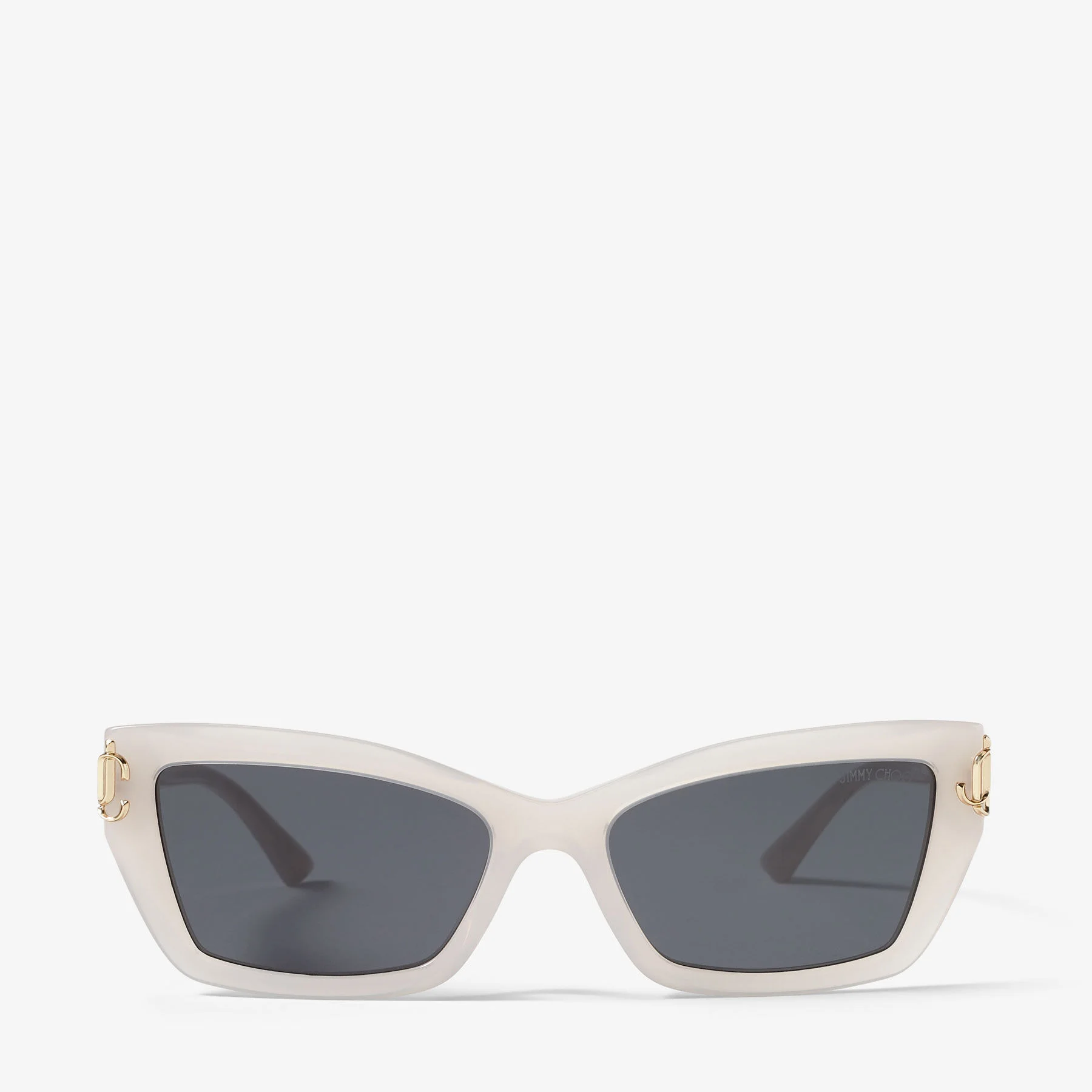 Details, Care & Fit Isla is a modern cat eye style detailed with tapered temples and a metal JC emblem to each side of the frame. This streamlined silhouette with sharp angles is a fresh approach to a classic with tone-on-tone lenses. - Recycled acetate - Bio-nylon dark grey lenses - Cat eye frame - Jimmy Choo emblem - 100% UVA and UVB protection - Presented with a Jimmy Choo case and cleaning pouch - Lens width: 5.5cm - Bridge length: 1.7cm - Temple length: 14cm - Made in Italy