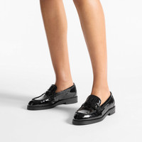 Details, Care & Fit A timeless silhouette reimagined in glossy croc-embossed leather. The Ivy Loafer features a low stacked heel and JC emblem hardware. - Croc embossed leather - Stacked heel - JC monogram - Made in Italy