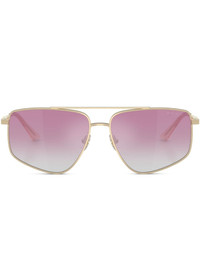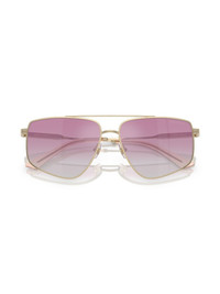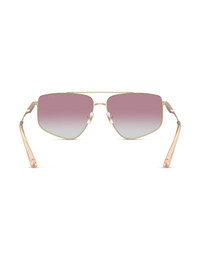 pilot frame sunglasses Highlights - Gold-tone - Stainless steel - Pilot frame - Pink tinted lenses - Nose pads - Straight arms - Logo print at the arm - Curved tips - These glasses come with a protective case. Made in United States Composition Steel 100% SIZE & FIT Measurement Arm Length 5.51 in(14 cm) Bridge Width 0.55 in(1.4 cm) Lens Diameter 2.28 in(5.8 cm)