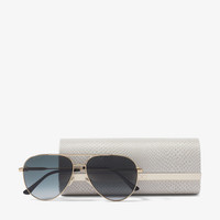 Details, Care & Fit Item No. OLLYS60E2M2 The OLLY aviator sunglasses are Italian-crafted in rose gold stainless steel and fitted with grey shades lenses. Each rose gold metal temple is enriched with a sparkling crystal, and completed by a classic black tip. Wear to elevate daily dressing. - Stainless steel front - Metal temples with gold Jimmy Choo signature - Crystal embellishment - Aviator frame - 100% UVA and UVB protection - Comes with Jimmy Choo case and cloth - Made in Italy