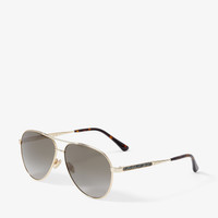 Details, Care & Fit Item No. JIMENAS60E06J The timeless aviator is elevated by our Jimena sunglasses designed with brown shaded lenses. Understated yet luxurious, they're crafted with a rose gold frame and temples complemented by a Swarovski crystal fabric insert and brown havana tips. A refined addition to your accessories collection, perfect for your vacation capsule. - Rose gold stainless steel front - Aviator frame - Metallic light gold Swarovski crystal fabric temples - Havana tips - Brown shaded lenses - 100% UVA and UVB protection - Comes with Jimmy Choo case and cloth - Made in Italy