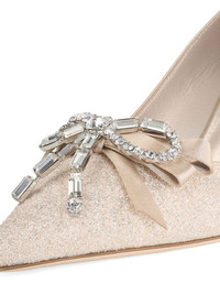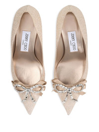 70mm Auria crystal bow pumps Highlights - Light soft gold - Crystal embellishment - Bow detail - Pointed toe - Leather sole Made in Italy Composition Outer: Fabric 100%, Glitter 100% Lining: Calf Leather 100% Sole: Calf Leather 100%