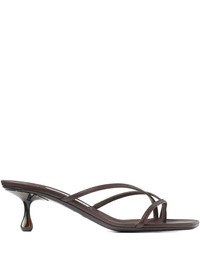 50mm Etna sandals Highlights - Chocolate brown - Slip-on style - Square open toe - Branded footbed - Mid sculpted heel - Wardrobe icon Made in Italy Composition Lining: Calf Leather 100% Sole: Calf Leather 100% Outer: Nappa Leather 100% SIZE & FIT Measurement HEEL 1.9 in(4.8 cm)