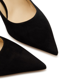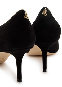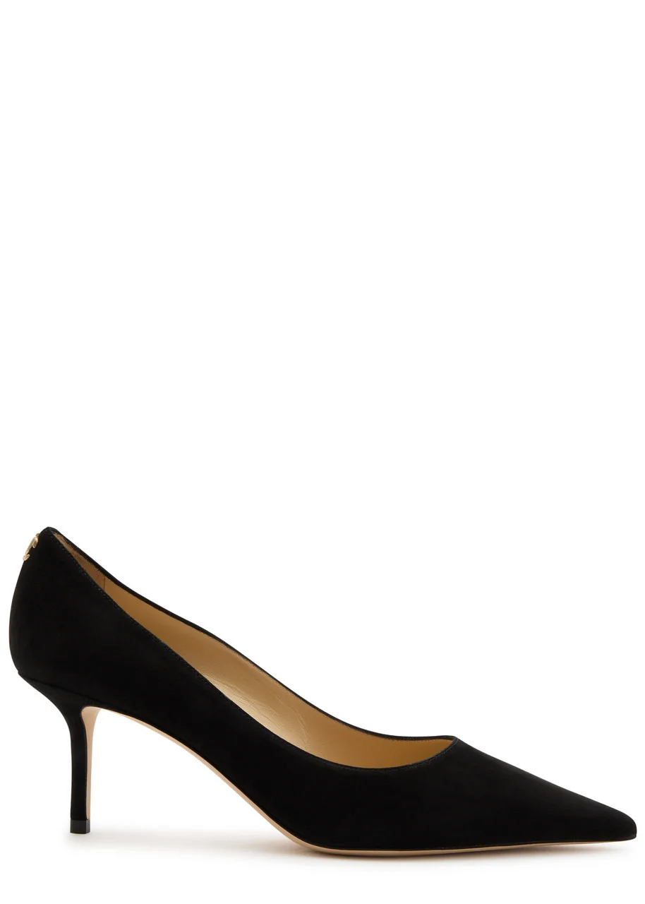 Info & Care Jimmy Choo suede pumps Heel measures approximately 2.5 inches/ 65mm Logo plaque at heel, pointed toe Slip-on Size & Fit Only available in full sizes, go up to the nearest whole size if you take a half size