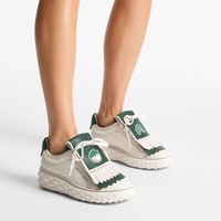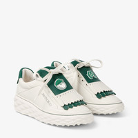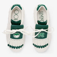 Details, Care & Fit Celebrating innovation and extraordinary style, the Jimmy Choo / Malbon 2.0 Diamond Trainer evolves Jimmy Choo’s signature shoe into a golf-ready iteration; integrating faceted Diamond cleats for enhanced grip and stability—perfect for staying grounded mid-swing. The minimal, water-resistant leather upper is contrasted with playful accents including ‘Buckets’, Malbon’s iconic mascot, featured at the heel. Hybrid styling options also feature in the form of a detachable, fringed leather kiltie in seasonal colours and an additional set of graphic laces. Designed for seamless transitions from the fairway to the clubhouse cool, this shoe is the ultimate fusion of form and function. - Leather upper - Embroidered Malbon Buckets mascot - Water-resistant treated - Rubber sole with integrated Diamond golf cleats - Detachable embroidered leather kiltie - Additional patterned laces - Made in Italy