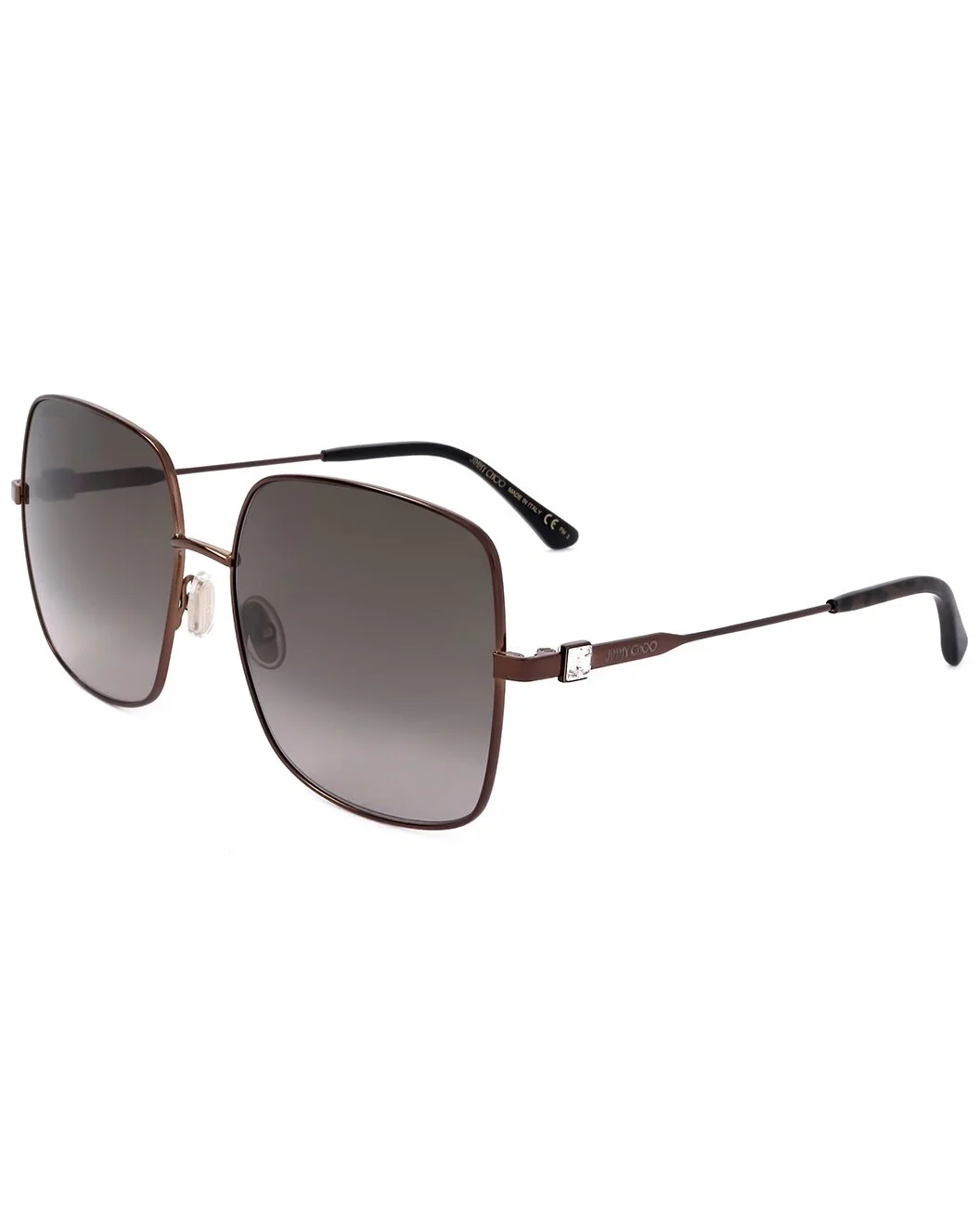 - About the brand: Born in London in the early 90's, Jimmy Choo was one of the first luxury brands to bring shoes and handbags to the red carpet. A playful sense of glamour and exceptional Italian craftsmanship separate Jimmy Choo from the rest, in Hollywood and beyond. - Frame shape: square - Frame color: bronze - Lens color: gradient brown - These frames flatter those with an oval, round, diamond, triangle or oblong shaped face - Plastic lenses with 100% UV protection - Logo at temple - Lens: 58mm wide - Bridge: 16mm wide - Arms: 145mm long - Case included; case size and color may vary - Made in Italy - Model #: LILI - The Eyewear Size Guide - Our products are 100% genuine. In some cases we purchase merchandise from trusted independent suppliers and not directly from the brand owner. In all cases we stand by the authenticity of every product sold on our site.