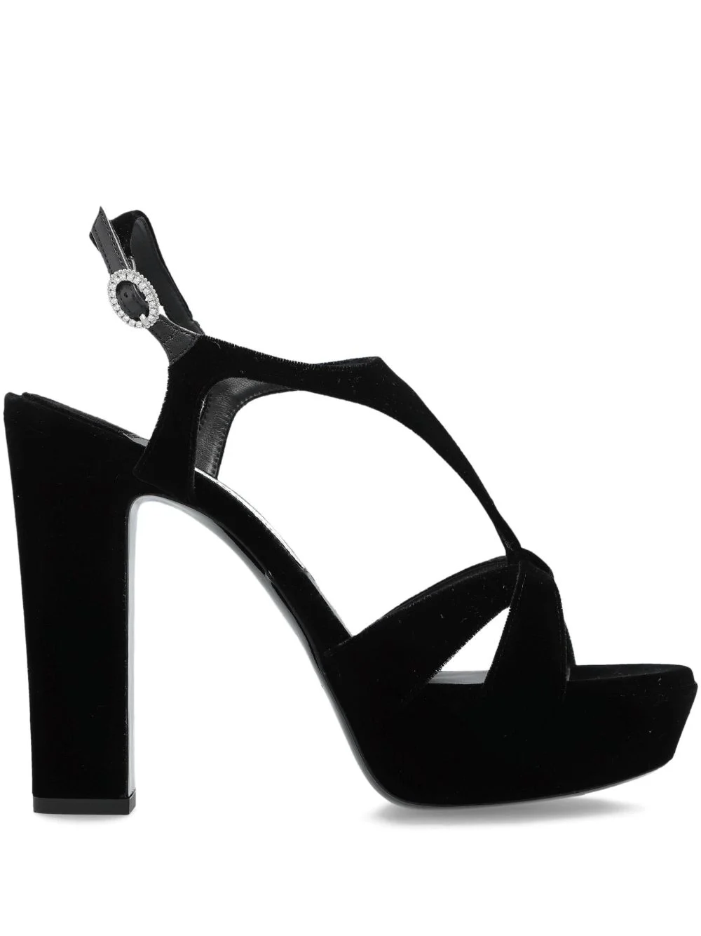 135mm Kesia t-strap platform heel sandals Highlights - Black - T-strap - Platform sole - 120mm heel - Buckle fastening - Open toe Made in Italy Composition Lining: Fabric 100% Outer: Calf Suede 100% Sole: Rubber 100%