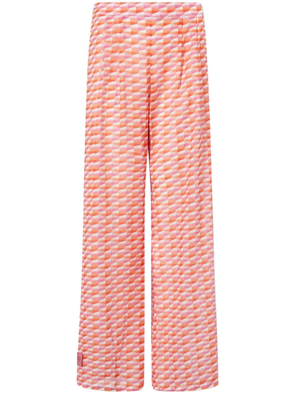 Laren geometric-print cotton trousers Highlights - Multicolour - Cotton - Geometric-pattern print - Mid-rise - Straight leg - Logo patch to the side Made in Italy Composition Organic Cotton 100% SIZE & FIT Measurement FRONT RISE 9.84 in(25 cm) INSIDE LEG 30.9 in(78.5 cm) Outside Leg 25.98 in(66 cm) FittingInformation This piece fits small – take one size up