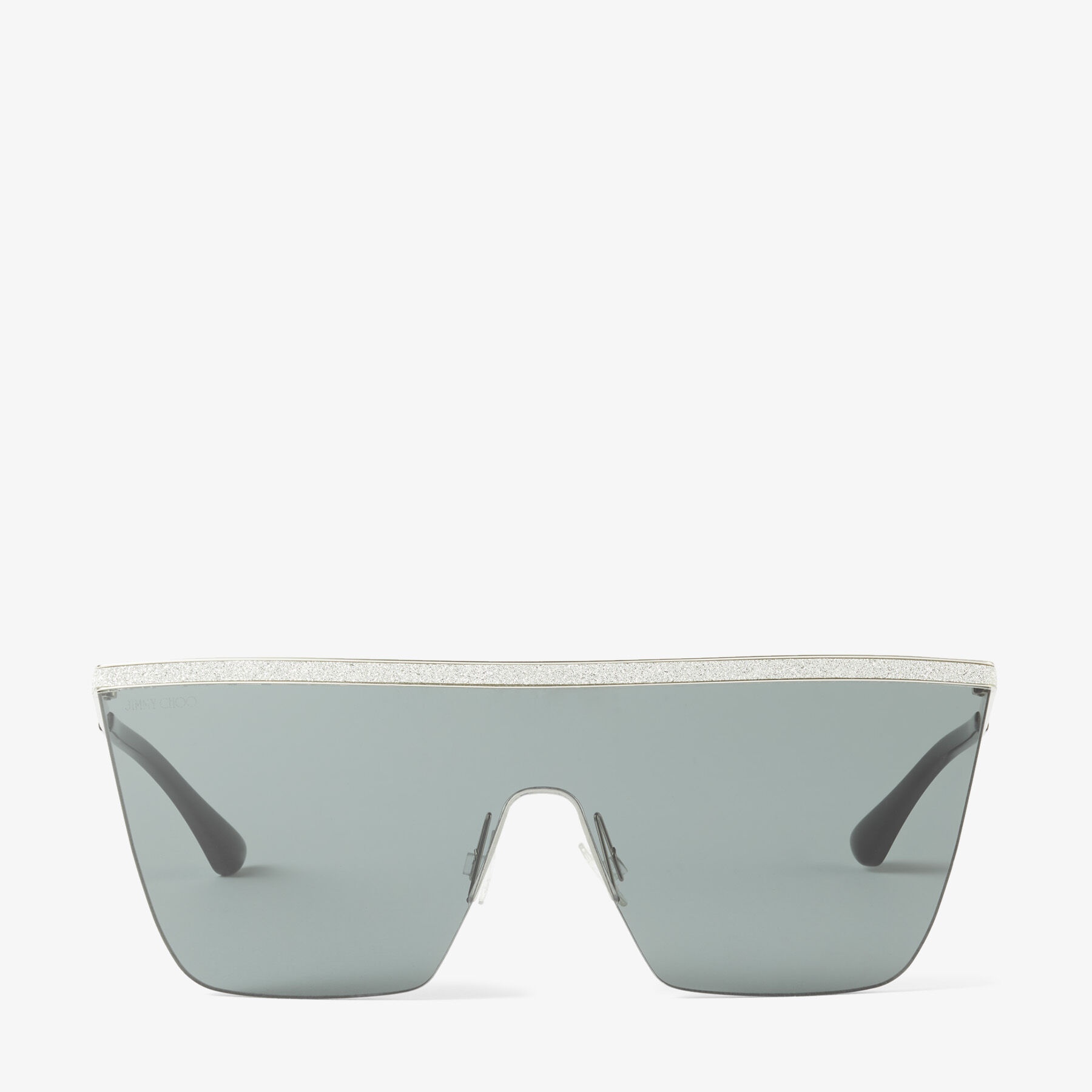 Details, Care & Fit Item No. LEAHS99E79D For a daring look with detailed glamour, look to our LEAH sunglasses in a masked shape and grey shaded lenses. Crafted in Italy with a gold frame, this statement design is complemented by glitter embellishment. An entrance-making pair for day-to-evening dressing. - Silver front - Black tip - Glitter front bar detail - Mask frame - Grey lenses - 100% UVA and UVB protection - Comes with sustainable natural linen soft case with gold JC logo and cloth - Made in Italy