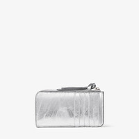 Details, Care & Fit This leather card holder is a streamlined accessory ideal for neatly stowing away essentials. It’s crafted from vintage metallic leather and complemented by signature Diamond studs. This style is designed with 5 card slots, a zip-around fastening and a metal clip. - Vintage metallic leather - Antique silver-tone Diamond hardware - Zip fastening - 5 card slots - Metal clip - Bag Measures: L 14.3 x H 1.6 x W 7.8cm - Made in Italy - By purchasing this product, you join our commitment to support responsible leather manufacturing through the Leather Working Group