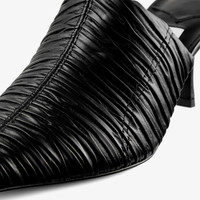 Details, Care & Fit The Lotta mule elevates a classic silhouette with a sleek, modern design crafted from ruched leather. This open back style is a versatile shoe for your day or evening wardrobe. - Ruched leather - Pointed toe - Leather lining - Leather and rubber sole - Heel height measures: 65mm/2.5 inches - Made in Italy