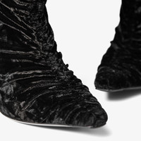 Details, Care & Fit The Lotta boot brings classic glamour to a statement over-the-knee silhouette in crushed velvet. It is designed with a pointed toe and crafted from a stretch fabric to ensure a perfect fit. - Crushed stretch velvet - Pointed toe - Textile lining - Leather and rubber sole - Slip on style - Heel height measures: 100mm/3.9 inches - Made in Italy