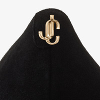 Black Suede Pointed Pumps with JC Emblem