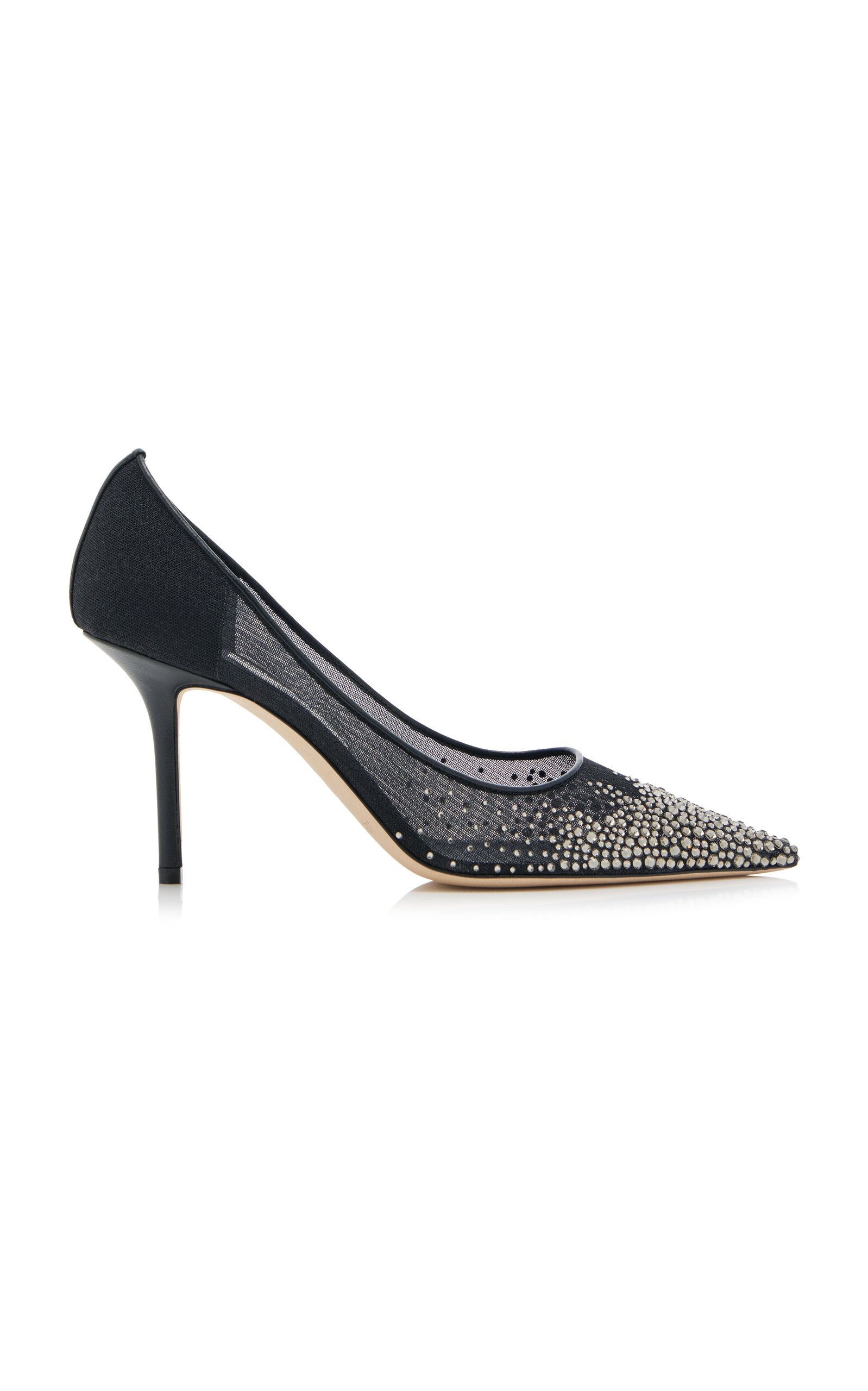 Loved by everyone from mega-celebrities to first ladies and royalty, Jimmy Choo's faultless roster of shoes and accessories have graced countless red carpets and glamorous events. The 'Love' pumps have a sleek, pointed silhouette adorned in a degrade crystal galaxy along its mesh body. Style yours with silky evening wear for a touch of sparkle. PRODUCT DETAILS - Heel height measures approximately 85mm/ 3.35" - Slip on - Composition: crystal, mesh - Imported