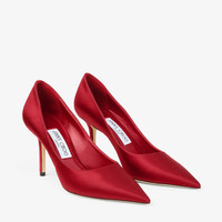 Details, Care & Fit A signature Jimmy Choo silhouette, reimagined in ruby red. The Love pump is shaped with a sharply pointed toe and slender stiletto heel, finished in high-shine satin. The vamp is cut slightly higher on the foot for added coverage and a flattering line. - Satin - Hand-sculpted sole - Pointed toe - Leather lining and sole - Heel height measures: 85mm/3.3 inches - Made in Italy