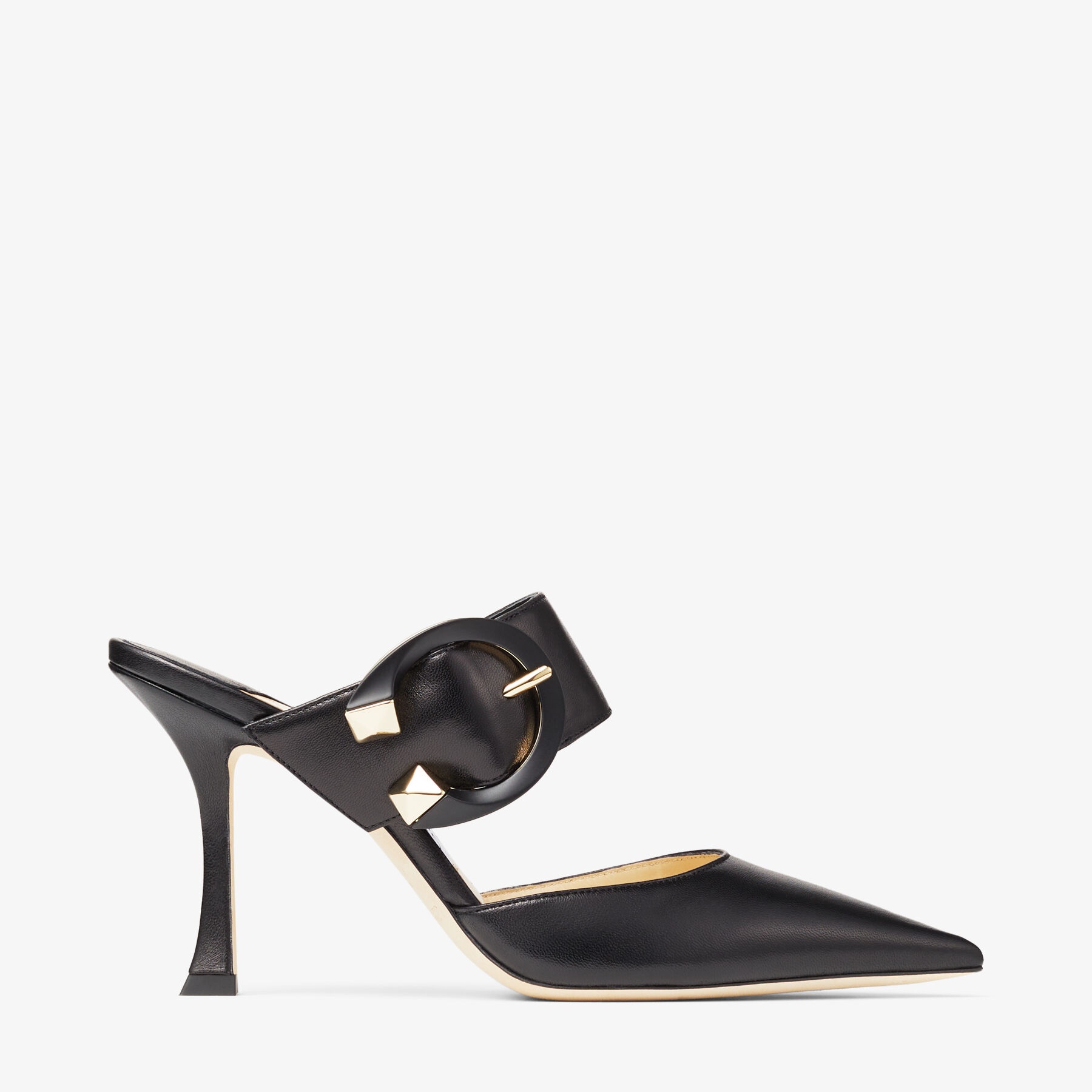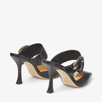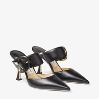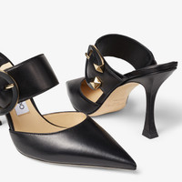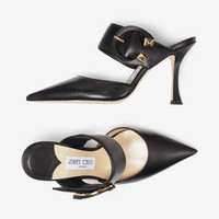 Black Nappa Leather Pointed-Toe Mules with C-Buckle
