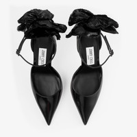 Black Soft Spazzolato Pumps with Short Tinsel Corsage