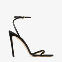 Details, Care & Fit A delicate evening sandal, crafted in soft satin and set on a slender 100mm heel, defined by an elegant criss-crossed upper and ankle strap. - Satin - Open toe - Crossover straps - Heel height: 100mm / 3.9 inches - Made in Italy