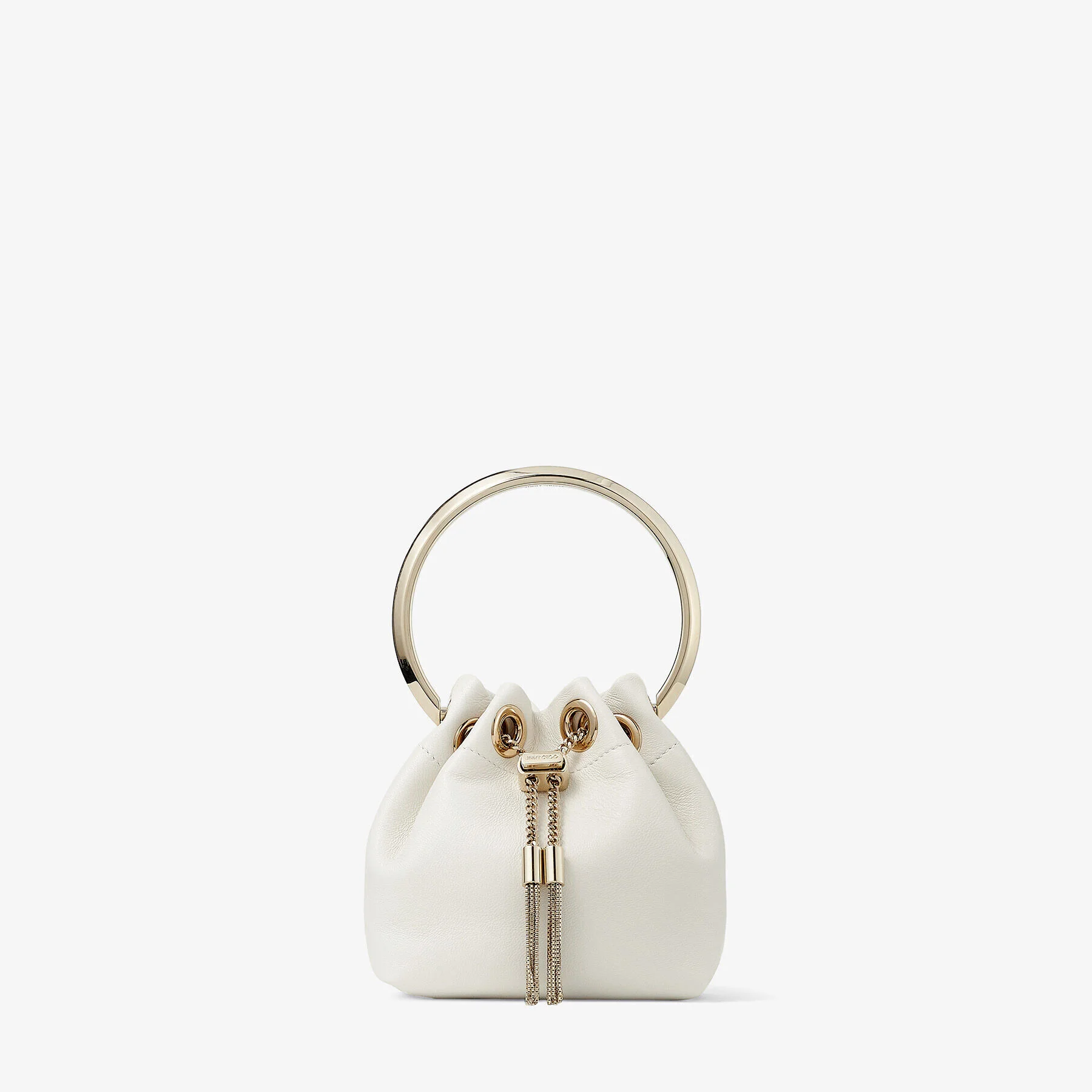 Details, Care & Fit Our iconic BON BON bag is reimagined in miniature. Italian-crafted in latte smooth nappa, the perfectly petite MICRO BON BON features a light gold chain drawstring fastening and a light gold metal bracelet top handle. Prepare for mini proportions and maximum impact. - Smooth nappa - Metal top handle - Chain drawstring closure - Chain strap - Interior pocket - Tassel detailing - Size: H12 x L11.5 x W7 cm - Handle drop: 8cm - Shoulder strap: 55cm - Made in Italy