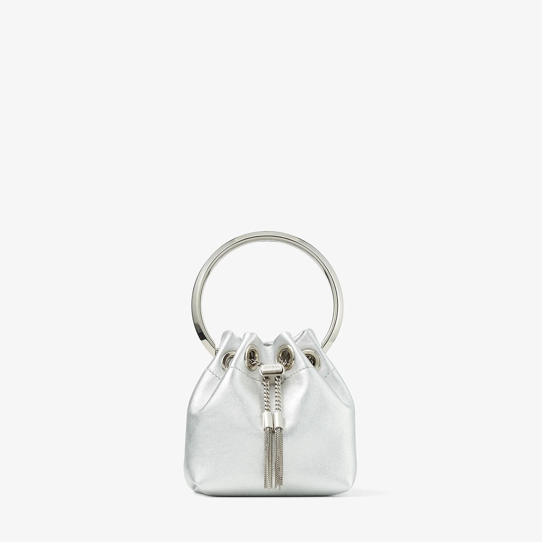 Details, Care & Fit Our iconic BON BON bag is reimagined in miniature. Italian-crafted in silver metallic nappa, the perfectly petite MICRO BON BON features a silver chain drawstring fastening and a silver metal bracelet top handle. Prepare for mini proportions and maximum impact. - Metallic Nappa leather - Metal top handle - Chain drawstring closure - Chain strap - Interior pocket - Tassel detail - Measures: L 11.5 x W 7 x H 12 cm - Handle drop: 8cm - Shoulder strap: 55cm - Made in Italy