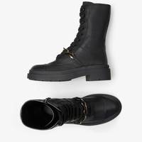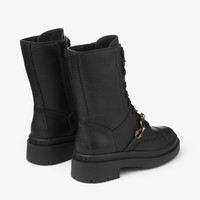 Details, Care & Fit Item No. NARIFLATAUQ Our Nari boots are designed to a classic silhouette in leather with a grainy finish. Complemented by a chain detail, signature to our Diamond collection, they're a lace-up design that will pair effortlessly in both work and weekend wardrobes. Italian sizing. Fits true to size. - Grainy leather - 'Diamond' chain - Lace up - Round toe - Rubber sole - Made in Italy